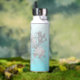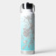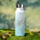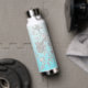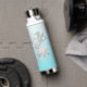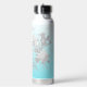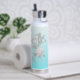 Bouteille d'eau turquoise avec nom et fleurs