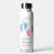 Conçu pour les annonces jumelles, ce biberon d'eau personnalisé comporte des empreintes de bébé rose et bleu, ainsi que des noms et une date d'échéance. Une idée cadeau de charme pour s'attendre à des parents jumeaux, la grossesse révèle, ou un gardien personnalisé pour chérir cette étape.