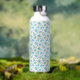 Bouteille D'eau un arrière - plan blanc aux fleurs bleues et au le
