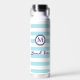Bouteille D'eau Vibes de plage de Monogramme nautique Bleu Blanc r