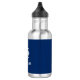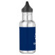 Votre nom personnalisé, nom du bateau ou texte avec un chapeau de roue de navire nautique sur une bouteille d'eau bleu marine.