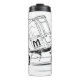 bouteille isotherme avec sac à dos écrasant une voiture. logo Meny Bikes intégré.