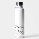 Un amusant motif de pois accentue le fond de cette bouteille d'eau personnalisée avec votre nom imprimé verticalement en lettres chic des deux côtés.