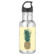 La peinture d'un ananas mûr entier avec des feuilles est imprimée trois fois sur des bouteilles d'eau personnalisées. L'arrière - plan jaune clair peut être customisé ou supprimé.