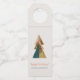 Cette étiquette de suspension de bouteille amusante est ornée d'accents en bois ainsi que de vert pin, de corail et de blush.