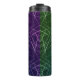 Embrace a bold, dual-tone look with this striking "Grid Split" thermal tumbler featuring a vertical split design—deep royal purple on one side and forest emerald green on the other—overlaid with an intricate web of luminous white geometric lines. A futuristic statement in your street-wear accessories collection.