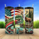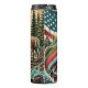 Un collage vibrant représentant les sports de plein air américains, avec une grande truite colorée qui sautent en premier plan. Au-dessus, un majestueux wapiti se dresse près d'un bateau, et un drapeau américain rustique flotte au-dessus. Deux pêcheurs sont montrés en bateau sur un lac serein, entourés de forêts de pins et de figures lointaines, le tout transportant une riche scène de chasse et de pêche dans le désert.