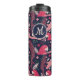 Ara Parrot Rouge Tropical Leave Motif Monogram Thermal Tumbler. Ara motif sur bleu foncé arrière - plan avec des feuilles tropicaux dans les tons vert, rouge et beige. Illustration à main. Ajoutez votre monogramme.