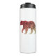 Cette conception est le contour d'un ours avec un dégradé de couleur rouge ou marron à beige et la silhouette d'un arbre à l'intérieur.