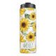 Personnalisez ce chaudière thermique à motifs de tournesol magnifiquement stylisé avec votre propre nom, ou le nom de quelqu'un que vous voulez lui donner, comme un enseignant préféré.