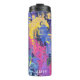 Une composition abstraite dynamique qui explose avec énergie et couleur. Ce morceau présente des coups de pinceau dynamiques en rose électrique, en bleu profond et en jaune brillant, créant une danse fascinante de lumière et d'ombre. Les éléments géométriques tels que les points et les croix sont dispersés dans tout le bâtiment, ajoutant une structure au chaos, tandis que les transitions de couleurs de dégradé donnent à la pièce un sens de profondeur et de mouvement. Personnalisez avec un nom.