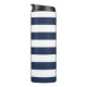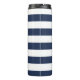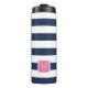 Notre tondeuse rayée nautique chic garde votre boisson préférée chaud ou froid style! Le design Preppy présente des bandes larges et audacieuses en bleu marine classique et blanc avec votre monogramme initial unique en rose vif contrastant pour une pop de couleur.