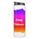 Keep your cool beverages cool and hot beverages hot in this quality tumbler. The design features a multi-colored background that contains a large baseball and the silhouette of a batter. Personalize it with your name. The text is easily changed by using the template. Selecting “Personalize this design” offers you several edit options to easily change the text (wording, plus type font, color, size, position) and to possibly edit the design elements. You may also want to scroll down to the section “Transfer design to a product” for a few suggestions about other items this design can be used on.