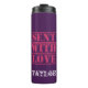 Un design charmant, ce tondeuse thermale présente un arrière - plan violet avec "Envoyé avec amour" écrit en typographie rose. Directement ci-dessous est un modèle pour personnaliser votre nom en violet clair. Customisez le vôtre aujourd'hui ! Clipart de Huckleberry Hearts, LLC, © www.Huckleberry-Hearts.com