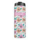 Personalized thermal tumbler with big bright flowers pattern on light background.