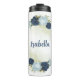 Belle bouteille d'eau avec des fleurs bleu marine et poussiéreuse et des feuilles verts POUR PLUS DE PRODUITS CORRESPONDANTS cliquez sur la collection ci-dessus ou contactez-moi