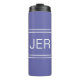 Des initiales personnalisées en monogramme sont ajoutées sur un fond bleu avec une police ombrée de blanc et un double cadre. Trois tasses thermiques à monogramme initial sont intemporelles, classiques et élégantes. Parfait pour les boissons chaudes et froides ! Notre design unique est le cadeau personnalisé idéal pour cette occasion spéciale. Découvrez notre collection intégrée d'accessoires de golf et de sport aux couleurs coordonnées.