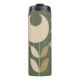 Un design boho aux formes simples dans des couleurs rustiques de vert, bronzé, beige, marron et orange.