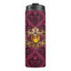 Burgundy et vintage or damask tumbler avec une pierre à gemme monogrammée.