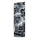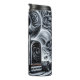 Cette image monochromatique présente un puissant semi-camion noir avec des détails argentés stylisés et tourbillonnants, sur fond de fumée blanche fantomatique et tourbillonnante et de nombreux crânes menaçants de tailles diverses. Les crânes semblent émerger de la brume fumée, créant une atmosphère sombre et gothique autour du camion.
