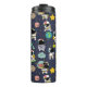 Graphique de clipart astronaute, Espace extra-atmosphérique : astronaute tenant ballon comme une planète, une fusée, étoiles, icône OVNI, icône satellite spatial, planète Saturne, vaisseau spatial, et d'autres. Sur Oxford Blue (bleu marine) arrière - plan.