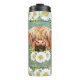 Une vache Highland, avec marguerites, sur un arrière - plan vert