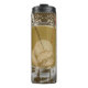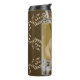 Bouteille d'eau Brown avec un joli cadre rond orné autour d'un char à bière racine. Joli, vieillot et charmant.