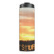 Chaud, couché de soleil, tasse de voyage thermique, pour chaud ou froid. Personnalisez le texte pour vous-même ou un cadeau créatif.