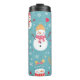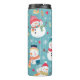 L'image est un joyeux motif sur le thème de Noël sur un arrière - plan bleu clair. Il comprend de nombreux bonhomme de neige adorables avec différents casquettes et écharpes colorés, entrecoupés de flocons de neige, de coeurs, d'étoiles et de cadeaux emballés. L'esthétique générale est ludique et festive, évoquant l'esprit de la période des fêtes.
