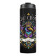 Roi Crow Cachet à graphisme coloré Le Roi Crow Cachet à graphisme coloré est un tondeur thermique vibrant et captivant qui est sûr de faire une déclaration. Le design est composé d'une corneille majestueuse avec un motif coloré et complexe sur ses plumes, dressé contre un arrière - plan noir. Le corbeau porte la couronne d'or d'un roi.