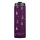 Chic pink glitter purple christmas trees name thermal tumbler. Personalize name.