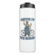 Finis ce type de bière, il est temps de faire du vélo ! Ce drôle de design est un homme à l'ancienne avec une moustache dans des couloirs tenant une bière et déclarant qu'il est temps de rouler à vélo.