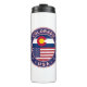 Badge du Colorado avec drapeau du Colorado et drapeau des Etats-Unis couleurs, forme arrondie. Emblème du Colorado. Sceau du Colorado. Collection USA Etats.