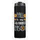 Petit citrouille marron, des illustrations de champignons et de bottes de pluie et le gros texte : L'automne est ma saison préférée.