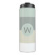 Une palette de couleurs cool et rafraîchissante, bleu poussiéreux, gris moyen, gris pâle et blanc, ont un charme minimaliste. Un cadre de jumelage rond entoure un grand monogramme que vous pouvez modifier avec votre initial souhaité. Si vous préférez le tumbler sans le monogramme, vous pouvez customiser cet élément et supprimer le cadre rond et le texte.
