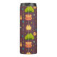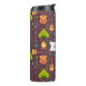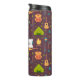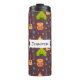 Une bouteille d'eau thermale avec un motif amusant à thème camping. Placer sur un arrière - plan brun rougeâtre. Les éléments du motif comprennent un feu de camp, une tente, une guitare, une pelle et un sac à dos. Personnalisez avec un nom.
