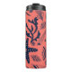 Motif dessiné à la main, fait de créatures sous-marines et d'algues sur arrière - plan de couleur corail vivant.