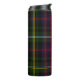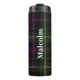 Culbuteur thermique fait sur commande beau fait dans le bleu classique, le motif écossais de noir, rouge et jaune vert de clan de Malcolm de tartan de plaid. Personnalisez le texte blanc fonctionnant en bas de l'avant pour adapter à vos besoins. Grande idée de cadeau.
