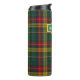 Culbuteur thermique fait sur commande coloré fait dans le motif écossais bleu, vert, rouge, et jaune classique de plaid de tartan de Buchanan de clan. Une plaque verte décorative des textes, a le texte blanc fait sur commande prêt à personnaliser. Grande idée de cadeau.