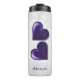 Profitez de toutes les boissons pendant votre déplacement avec un caisson thermique personnalisé de coeur violet. Le design Tumbler comprend une paire de coeurs, une vigne feuillue blanche molle contre un arrière - plan gris clair avec une zone à personnaliser avec votre nom. Autres cadeaux disponibles avec ce design ainsi qu'une variété de couleurs.