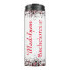 Lancez la fête avec ces mugs thermiques mignons qui sont faciles à personnaliser pour votre enterrement de vie de jeune fille, soirée entre filles ou week-end entre copines ! Le style minimaliste moderne présente un nom personnalisé avec des lettres rouges sur un fond blanc scintillant. Personnalisez avec deux lignes de texte personnalisé. Tout le texte peut être modifié à votre goût.