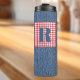 Un imprimé en denim bleu sur ce chaudière thermique 12oz tendance avec cadre rouge et blanc et une grande initiale bleue. Modifiez facilement le premier avec le Modèle fourni. Corps inoxydable, couvercle en plastique. La construction à double paroi scellée à vide conserve la température, le chaud ou le froid. Fabuleux cadeau personnalisé pour tous ceux qui aiment le style denim et rouge-blanc en vichy. Consultez "À propos de ce produit" à côté pour plus d'informations et de soins.