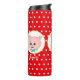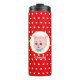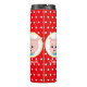 Joli cartoon de cochon avec des pois sur un gobelet thermique à fond rouge.