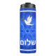 Texte hébreu personnalisable (Vous pouvez remplacer l'hébreu par le texte anglais) lisant, "shalom" (paix) et une colombe portant un peu de branche d'olivier dans son bec sur un bel arrière - plan fractal bleu et blanc avec une étoile de David et la suggestion d'ailes d'oiseaux.