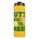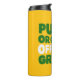 Art squelette « PUTT OR GET OFF THE GREEN » en gras sur un gobelet de voyage thermique — conçu pour les golfeurs qui gardent le rythme, parlent sans détour et boivent avec style.