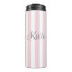 Le Tumbler est doté de bandes de verticules roses et blanches douces qui ont une sensation vintage élégante. Le nom customisé est dans un script décoratif gris doux. Ne remplissez pas le champ de nom si vous préférez le tumeur avec les rayures rose et blanc seul.