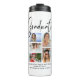 Élégant Script Multi Photo Graduation Graduate Coffee Thermal Tmblers présente cinq de vos photos préférées de votre diplôme d'études supérieures ou secondaires avec le script tourbillonnant moderne de calligraphie noire superposition "Graduate". Simple, élégant et classe. Créé par ©Evco Studio www.zazzle.com/store/evcostudio