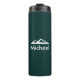 Emerald Green Mountain Personnalisé Custom Thermal Tumbler Faites démarrer la fête avec ces amusantes tumblers thermiques qui sont faciles à personnaliser pour votre soirée de bachelier, soirée de gars, ou week-end de bros! Le design moderne de la fête présente un contour de montagne blanc avec des lettrages blancs audacieux sur un arrière - plan vert émeraude. Personnalisez avec une ligne de texte personnalisé ; avec un nom. Tout le texte peut être modifié à votre goût. Des lignes de texte supplémentaires peuvent être ajoutées dans l'outil d'édition. Fait le cadeau parfait pour Noël, anniversaire, Fête des pères, Fête des grands-parents, remise des diplômes, et plus encore.