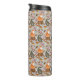 Le motif à tumeur thermique à thème des bois d'automne présente renard et blaireau avec feuilles et glands sur arrière - plan gris clair.
