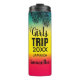 Les filles voyage swag... commémorez votre voyage ! Feuilles de palmiers tropicaux avec texte personnalisable sur arrière - plan vert jaune et rouge.